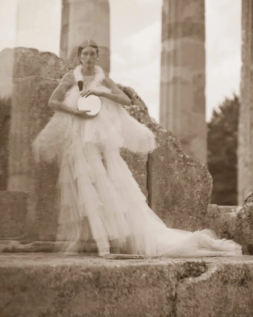 Resort 2022 se capturó en el corazón de un monumento emblemático, el Templo de Zeus en el antiguo sitio arqueológico griego de Nemea, en homenaje a un rodaje icónico que tuvo lugar en la Acrópolis hace setenta años.