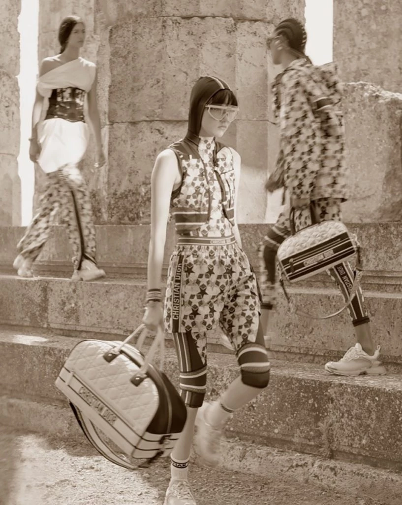 “Diseñada por Maria Grazia Chiuri, la colección Dior Cruise 2022 celebra la eterna belleza de Grecia. Las siluetas adoptan un estilo deportivo decididamente contemporáneo, los cortes son sueltos y flexibles, y los motivos se atreven a mezclarse y combinar con audacia. Una encantadora mitología moderna que combina el pasado y el presente ”, comparte Dior.