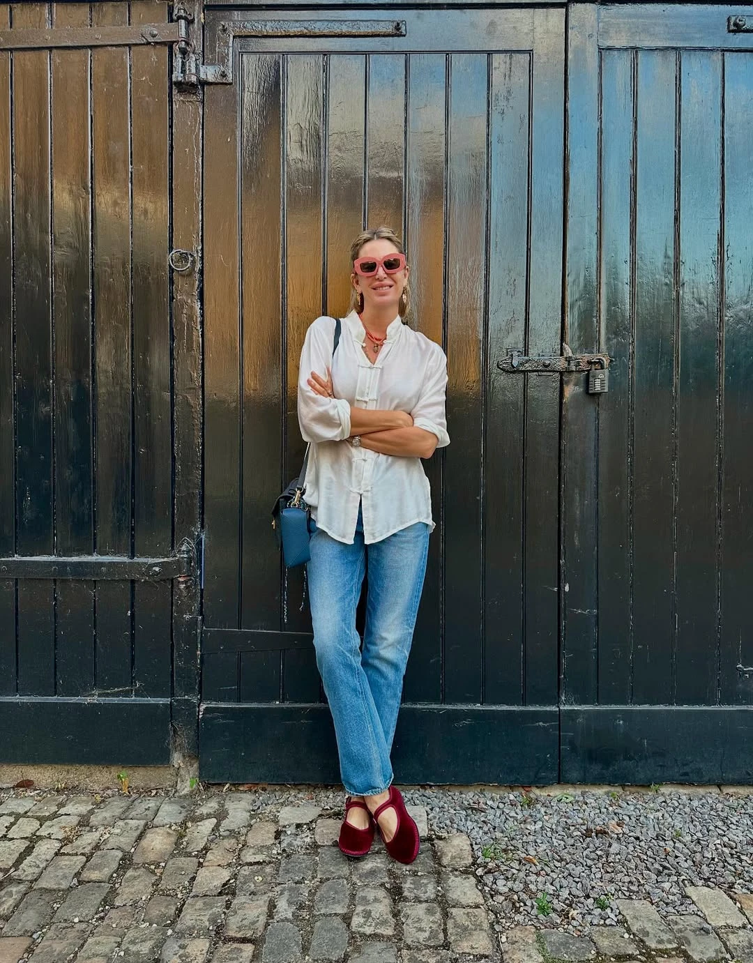El look: blusa blanca, jeans y guillerminas