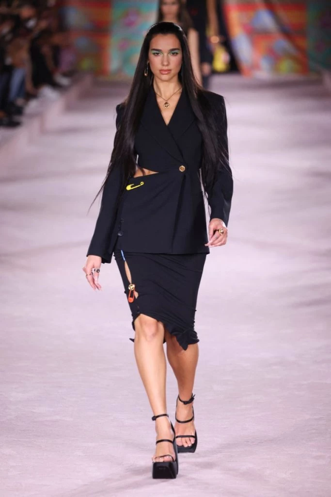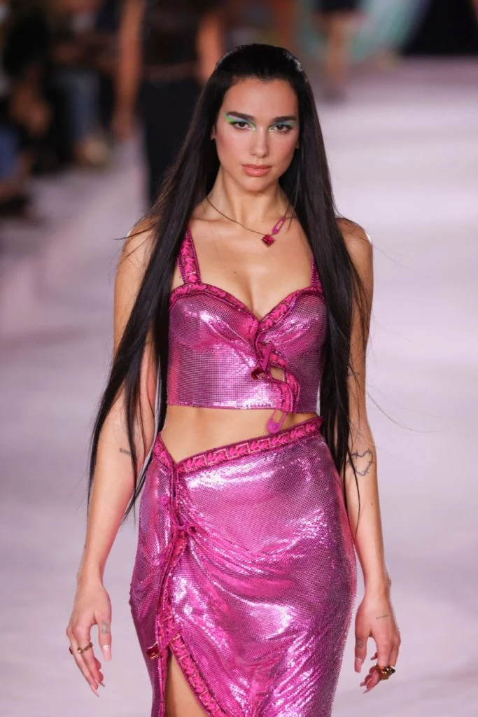 La aparición de Dua Lipa sobre la pasarela de Versace no fue casual ya que la reconocida artista es además la imagen de la colección otoño/invierno 2021, siendo así la actual musa de la Donatella Versace.