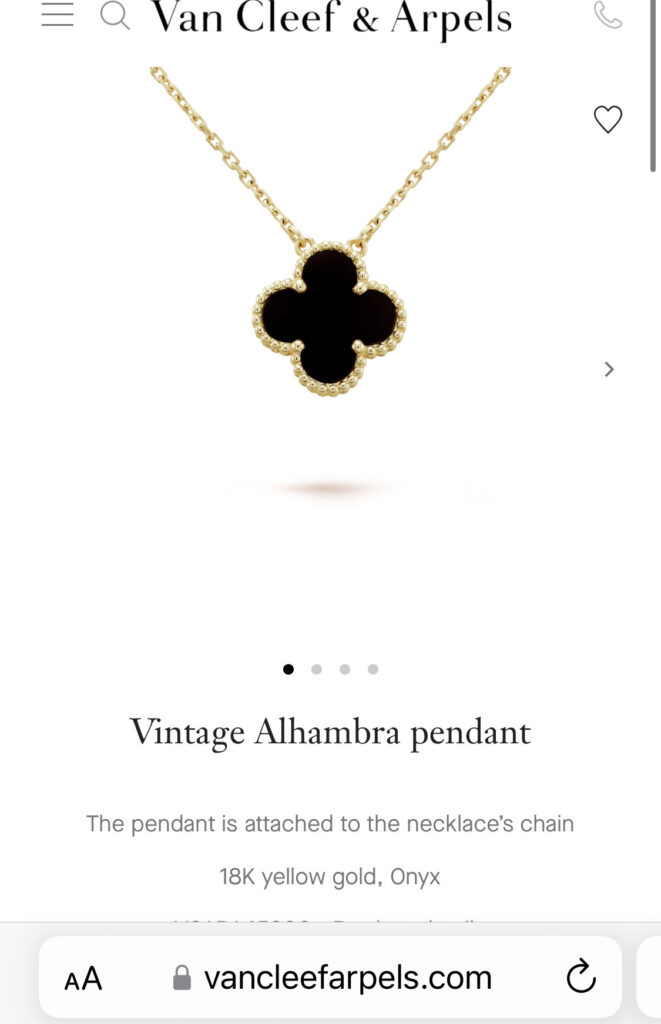 "El motivo Alhambra, estética icónica de Van Cleef & Arpels desde 1968, se inspira en los contornos del trébol de cuatro hojas. Desde entonces, celebra la suerte a través de creaciones joyeras constantemente reinventadas" dice la firma de joyas Van Cleef & Arpels sobre el collar que luce Wanda, creado en oro y ónix. Una pieza que por el complejo momento que está viviendo la empresaria toma mucho más significado. ¿Su valor? 2642 dólares.