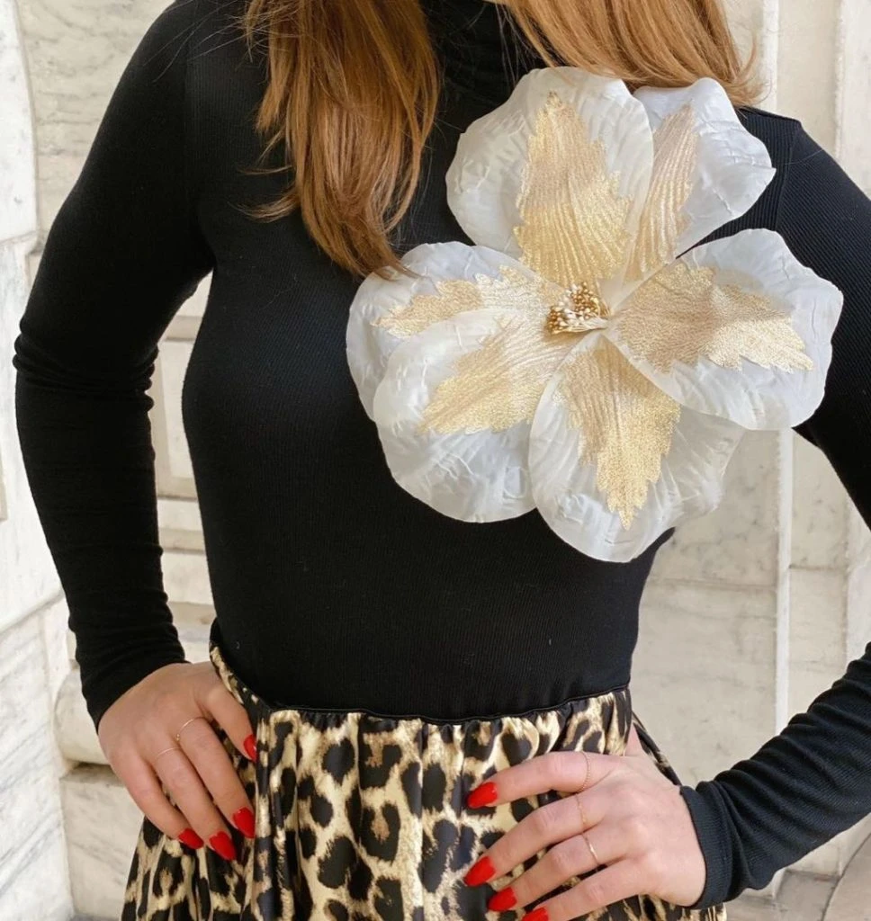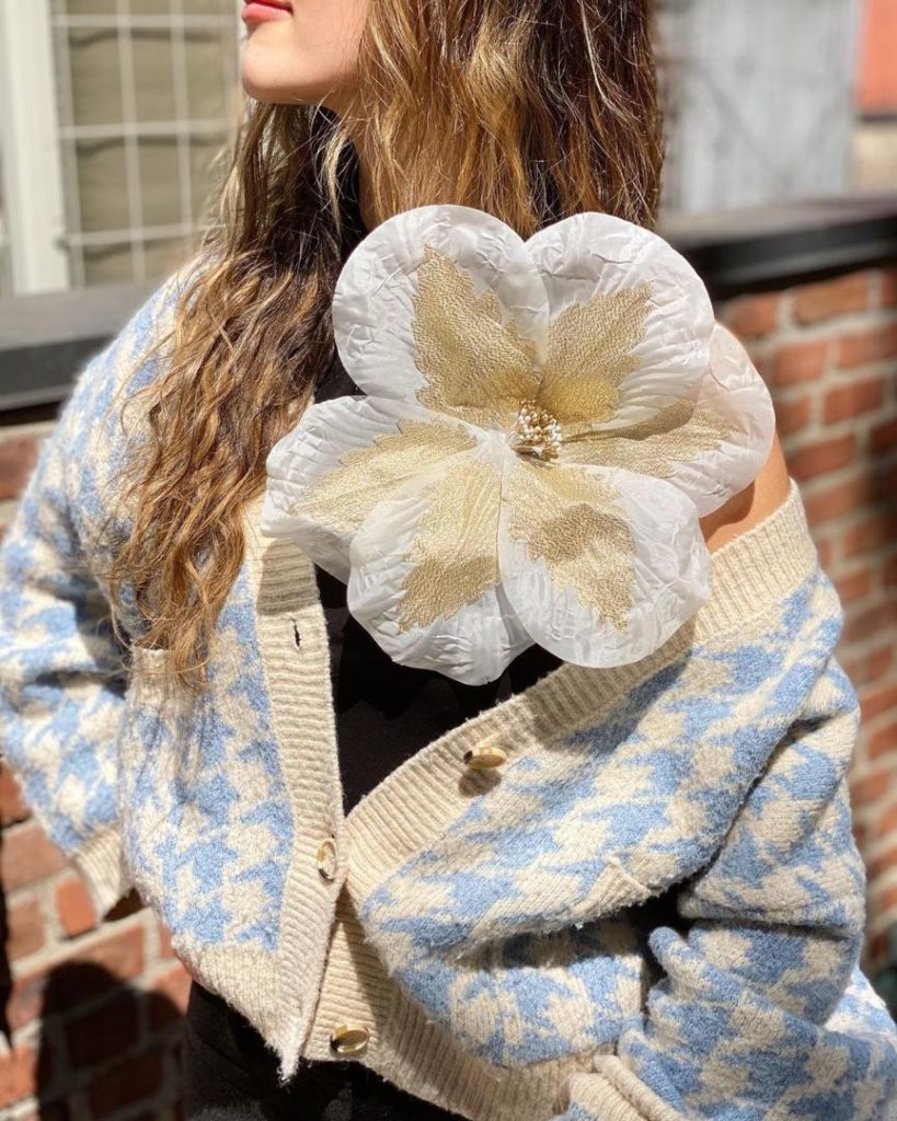 Un particular prendedor con una glan flor de tela es uno de los accesorios icónicos de "Sex and the city". Sarah Jessica Parker, personificando a Carrie Bradshaw la usó en la primera de las dos películas que se filmaron al terminar la serie.