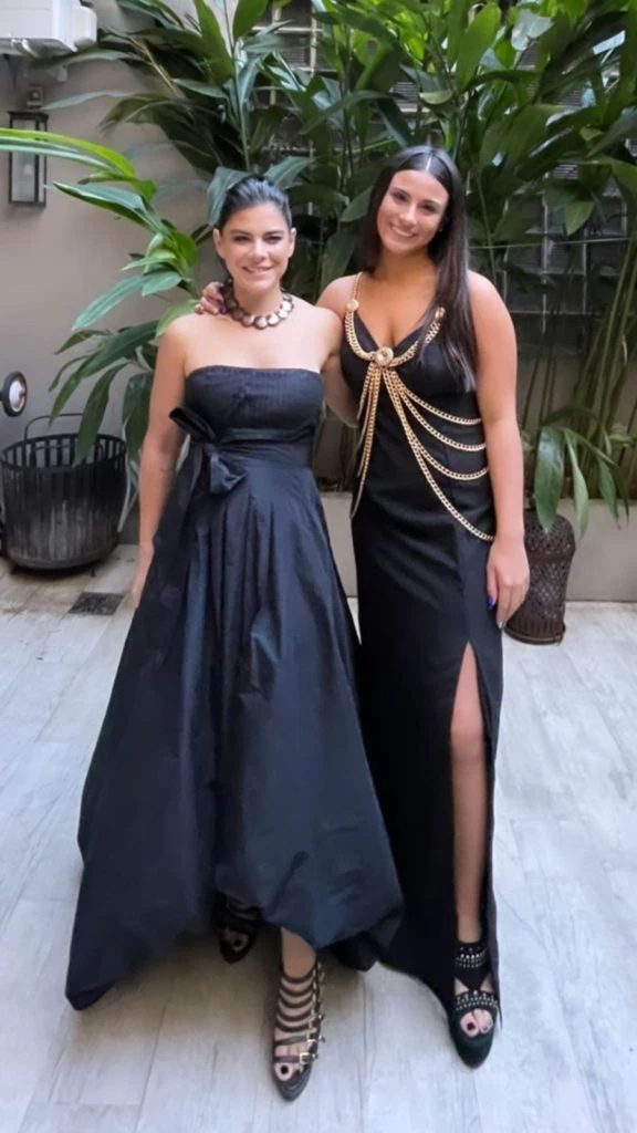 Mientras Lola Lanata eligió usar un vestido oscuro con cadenas doradas y aberturas, su madre se animó al vestido strapless de raso y con lazo corte princesa. Ambas fueron fotografiadas antes de comenzar la ceremonia y por supuesto, se destacaron por su elegancia y sofisticación. Por otro lado, la novia lució un vestido sin mangas, satinado y blanco, sin cola, diseñado por Gino Bogani, el histórico vesturista de famosas como Mirtha Legrand y Juana Viale.