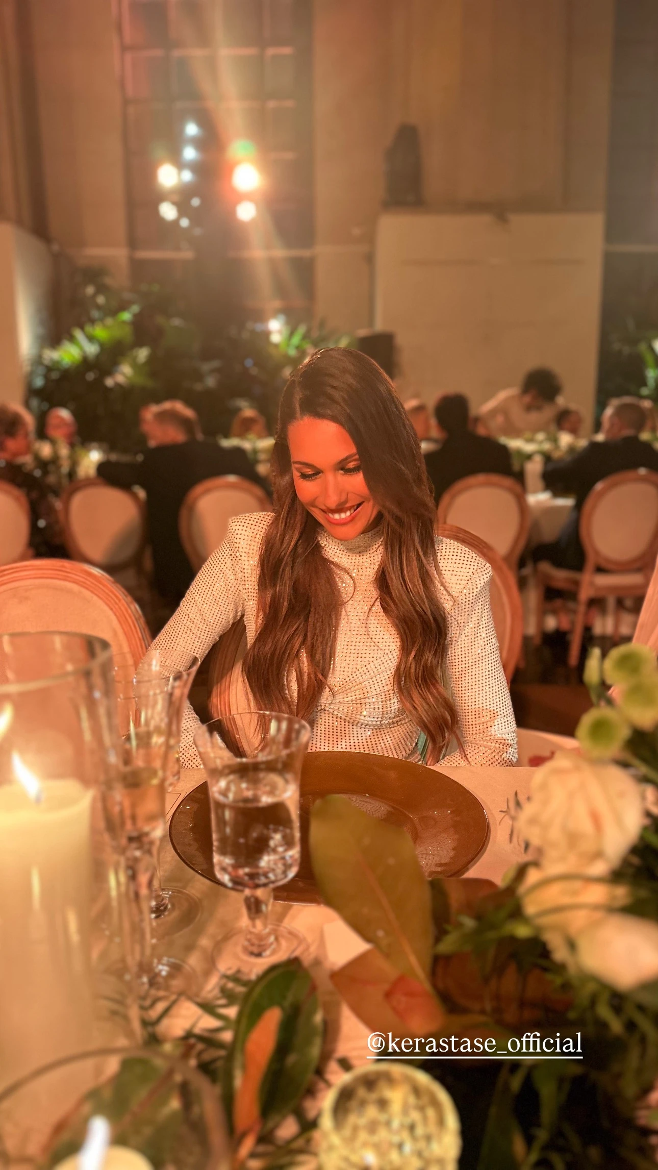 Para el encuentro que era, nada menos, que una cena de gala, la modelo eligió un deslumbrante look a puro brillo, con un diseño con varias de las tendencias protagonistas del 2025.