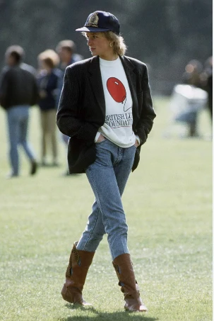 Lady Di solía llevarlas durante partidos de polo, eventos deportivos o momentos informales, combinándolas con blazers, jeans y botas, creando un estilo relajado que con el tiempo se volvió icónico.