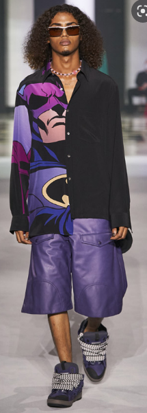 La sorpresa en esta firma, fundada por Jeanne Lanvin en 1889, la más antigua de París, fue ver que uno de los mayores protagonistas de la historia del cómic, Batman, se había convertido en el protagonista absoluto de cada uno de los estampados e incluso los tonos, pues el violeta y el verde pistacho que vestía el malvado Joker colorearon las prendas de la colección.