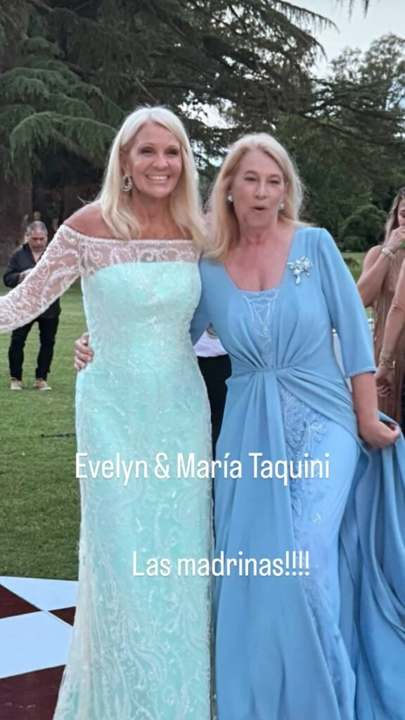 La pareja realizó una ceremonia campestre durante la tarde, cuya fiesta se prolongó hasta la madrugada. Evelyn, como madre del novio, fue la madrina de la boda.