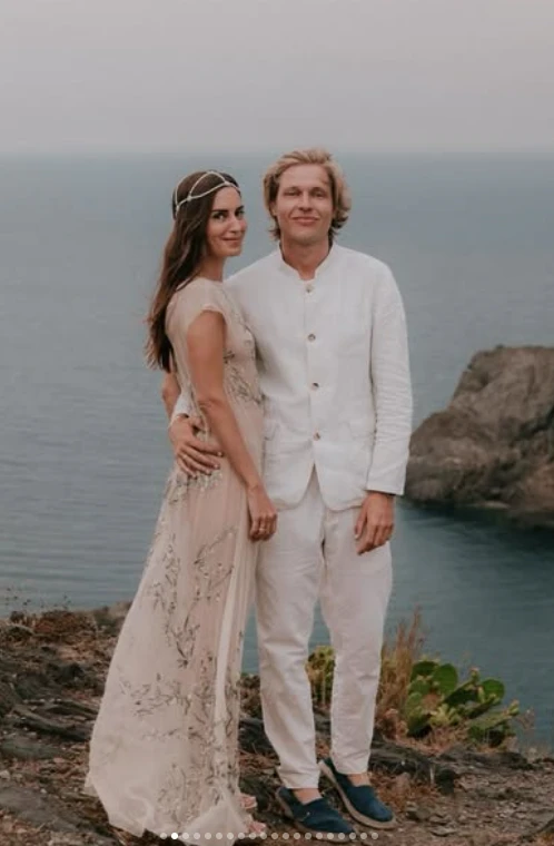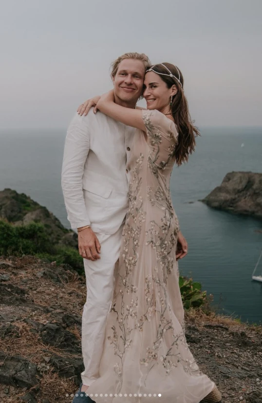 Para la celebración previa a su casamiento, Gala eligió un vestido soñado de Dior. Se trató de una pieza etérea y liviana, confeccionada en tul nude con bordados florales que parecían flotar sobre la piel. El diseño, de largo al piso y con mangas suaves, transmitía un espíritu romántico y boho chic ideal para una boda al aire libre junto al mar.