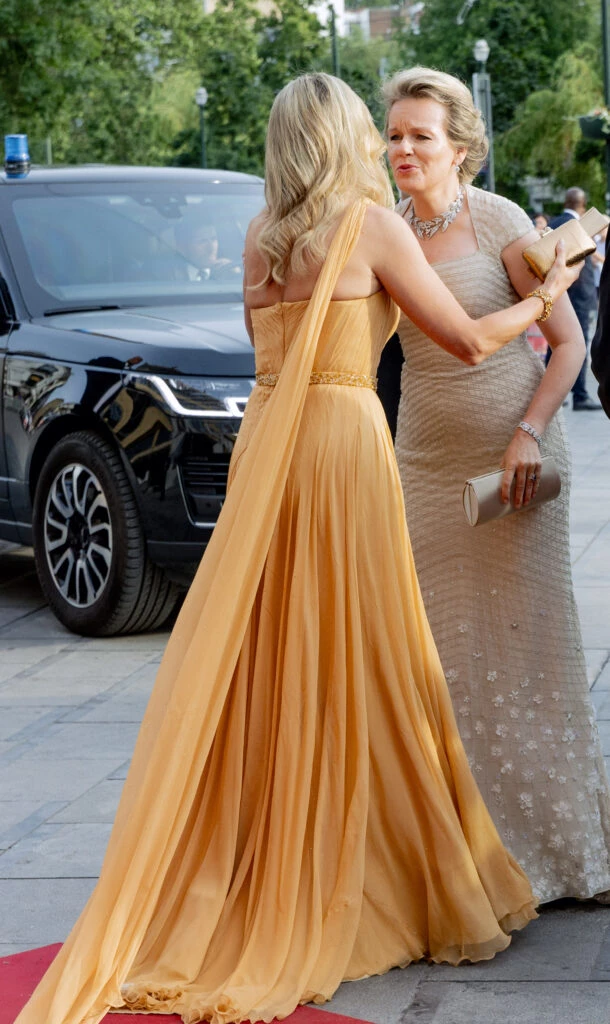 Para esta ocasión, donde también asistieron los reyes belgas, Máxima optó por un espectacular diseño de Jan Taminiau que ya había usado en 2011 para su cumpleaños número 40, para una cena de gala en 2014, y en Luxemburgo en 2018.