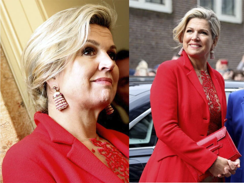 Se trata de un outfit integrado por un vestido con sutiles transparencias, un tapado rojo y zapatos al tono, que la reina de Países Bajos rescató de su placard y que había usado en al menos dos oportunidades previamente, en el año 2018.
