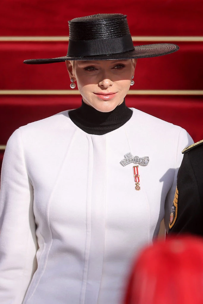 La princesa Charlene ha vuelto a causar impacto con su look en las celebraciones del Día Nacional de Mónaco, festividades que se han llevado a cabo este sábado y donde acudieron todos los Grimaldi, vistiendo un outlook bicolor en blanco y negro.