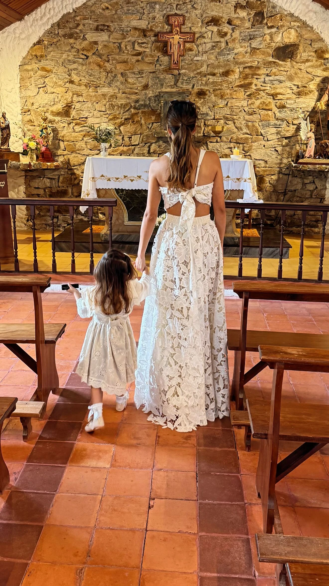 El look de Sarah Burlando: broderie y tonos nude, en sintonía con su mamá