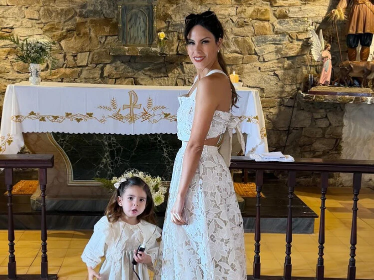 La pequeña Sarah, de dos años, combinó a la perfección con la estética general del evento. Lució un vestido de broderie color nude de la marca uruguaya Francina Petit, una opción delicada y sofisticada para una niña pequeña.