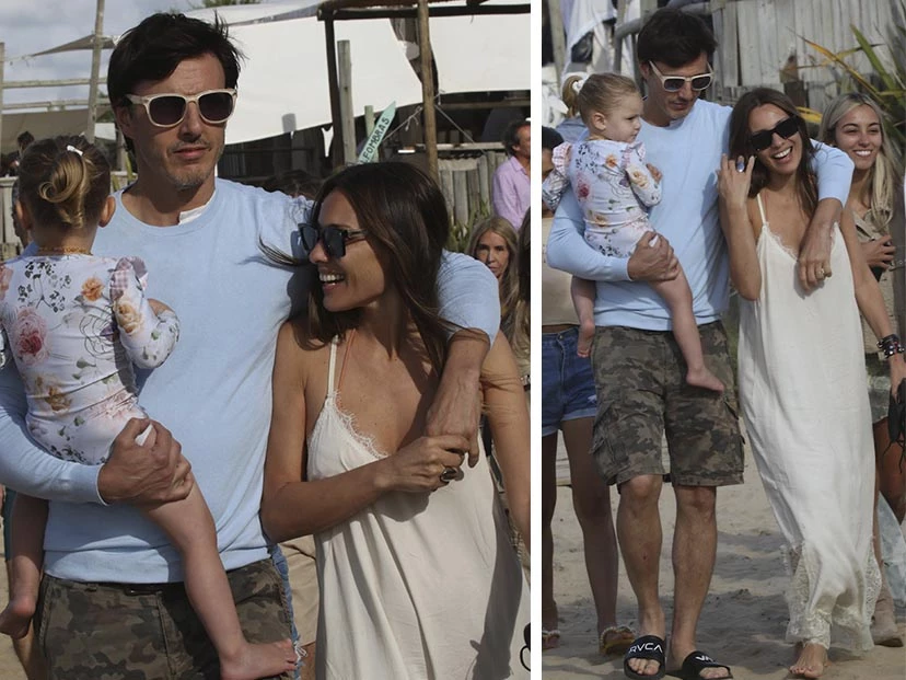 La modelo aprovechó para caminar descalza sobre la arena, mientras que García Moritán llevó a la pequeña Ana -que lucía un traje de baño con mangas largas- en brazos. Para completar su look playero, Pampita usó anteojos de sol de su cápsula y llevó el pelo suelto, además de tener en sus manos sus sandalias bajas con tiras.
