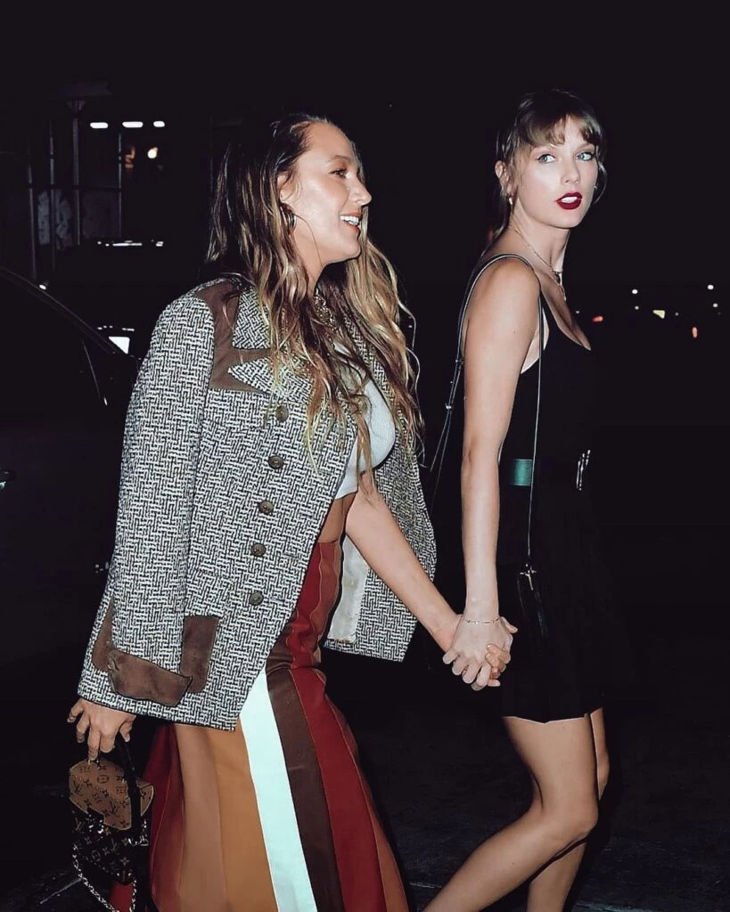Mientras la intérprete de "Bad Blood" lució un delicado mini vestido negro que combinó con una cartera de lujo, la protagonista de "Gossip Girl" apostó por los colores tierra. Blake llevó unas botas marrones hasta las rodillas, de Gucci, que ya utilizó en varias ocasiones, por lo que se mostró a favor de la moda circular.