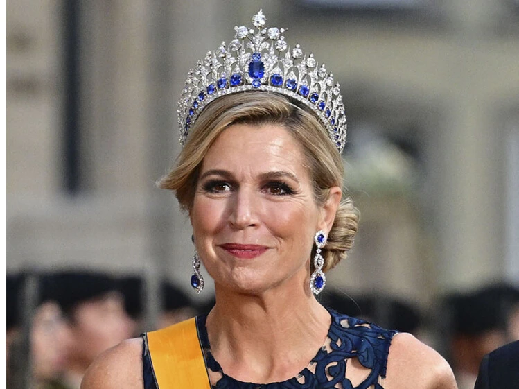 Además, la reina Máxima llevó la tiara de zafiros de la reina Emma, una pieza que ha sido un símbolo de la Casa Real neerlandesa y que aportó un toque de distinción al conjunto. El maquillaje y peinado de la reina también fueron impecables, con un recogido elegante y un maquillaje que resaltaba su belleza natural.