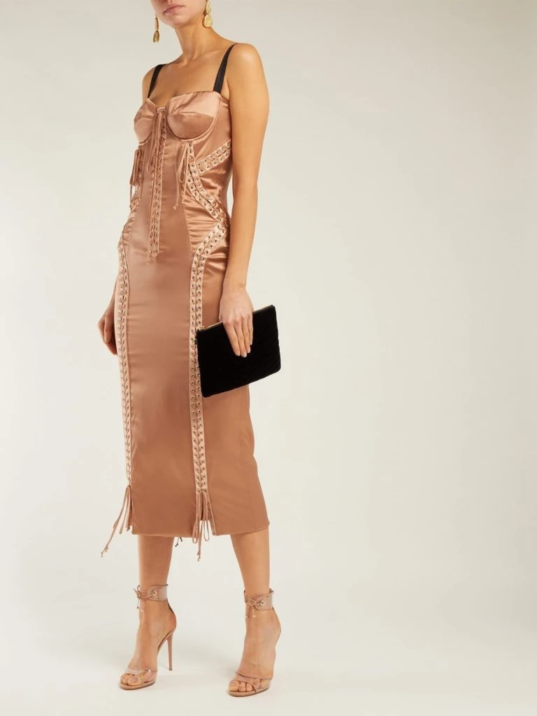 El diseño se encuentra confeccionado en satén de seda, que se ajusta al cuerpo, y lleva unos finos tirantes, inspirados en lencería femenina. El mismo tiene un valor en el mercado de 3.750 euros y actualmente, existen pocas unidades.