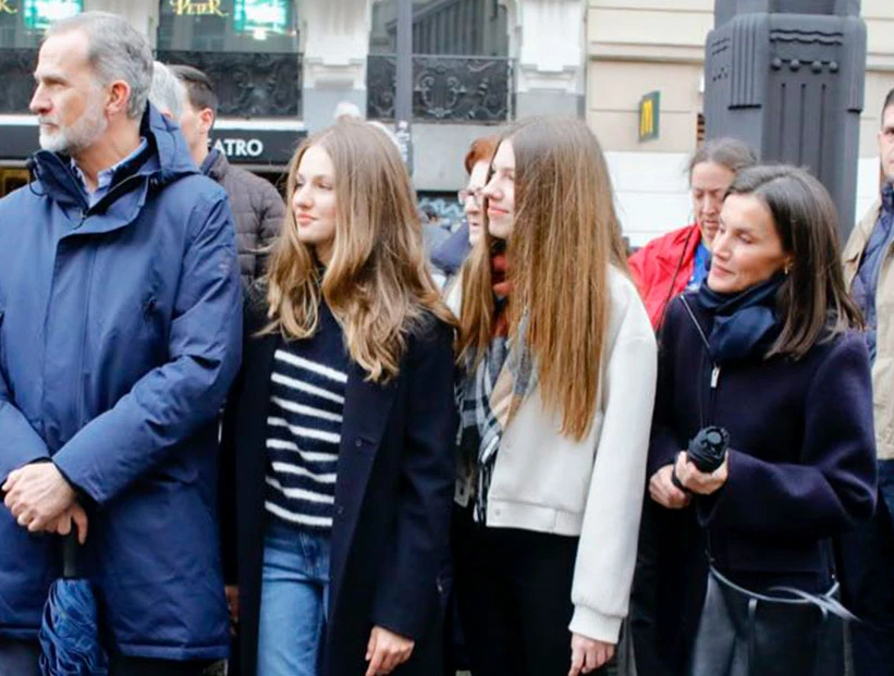 El sábado, la familia real española se mezcló con la gente en la procesión de Nuestra Señora de la Soledad y Desamparo que se llevó a cabo en Madrid. Lejos de lo protocolar, Felipe, Letizia y las princesas Leonor y Sofía caminaron entre la multitud, saludaron y se destacaron por sus looks perfectos para una tarde de lluvia.