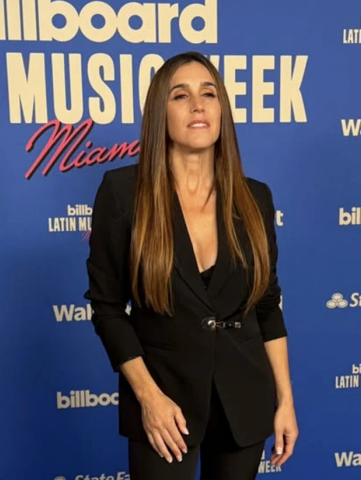 Durante su participación en el panel Raíz de la Billboard Latin Music Week en Miami, Soledad Pastorutti volvió a demostrar su elegancia natural con un look sobrio y poderoso: un traje negro de corte moderno, con blazer entallado y pantalón con leve campana, que estiliza y aporta movimiento.