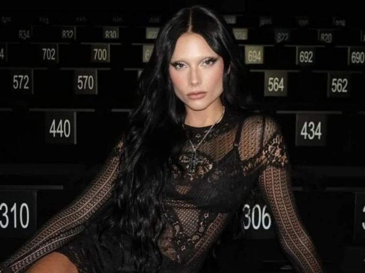 La pieza protagonista del outfit fue un corset de cuero negro con cierre frontal, una prenda que acentúa la figura y aporta una estética moderna y audaz.