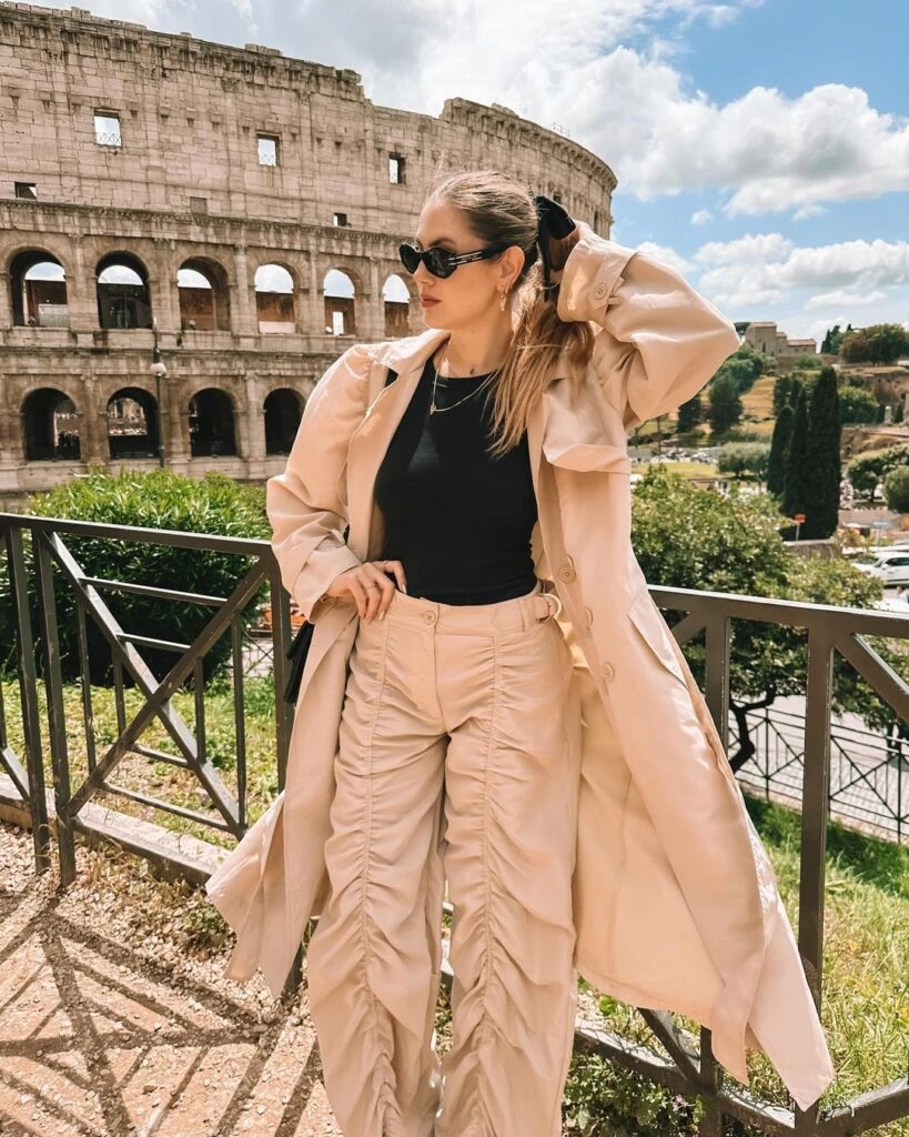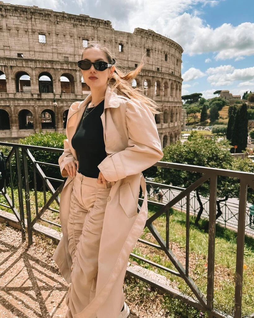 En cuanto el calzado, la influencer optó por unas cómodas zapatillas, muy aptas a la hora de caminar por la ciudad de Roma. Y en su peinado, eligió algo sencillo y fácil de hacer en casa: una coleta alta con un moño negro, haciendo juego con el body que llevó para esta ocasión.