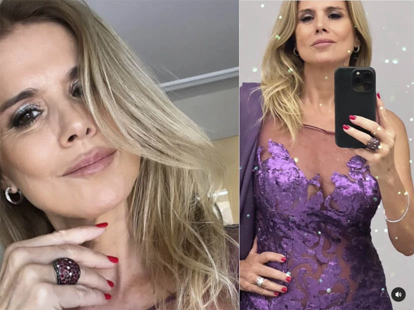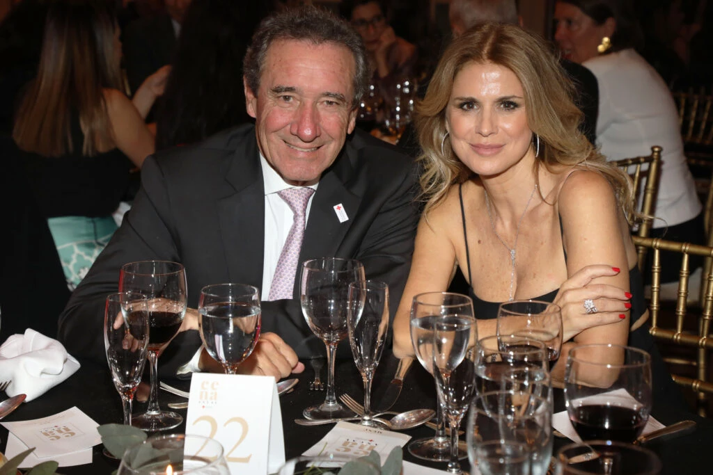 Para completar su look, Palmiero llevó el cabello suelto y un maquillaje suave, además de un clutch en color plateado y una chalina de gasa en tono violeta. Su pareja, Scalela, apostó por un smoking clásico.