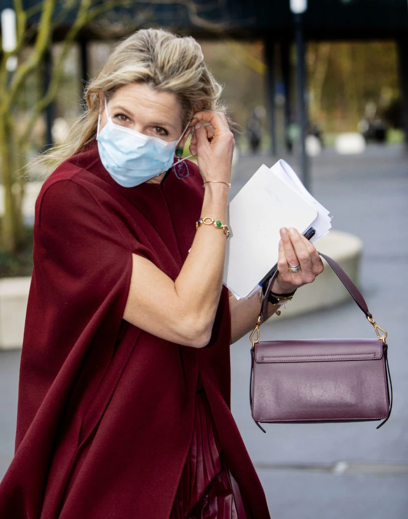 La esposa de Guillermo de Orange volvió a sorprender con un total look monocolor en borravino, uno de los tintes que será protagonista en las colecciones del invierno del Hemisferio Sur, con el que se mostró en una actividad oficial este miércoles. Allí se la pudo ver repitiendo una parte de su outfit que ya había usado a principios de enero: la capa que eligió para abrigarse.