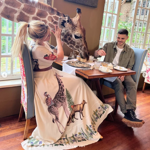 Esta mañana Wanda Nara compartió en sus redes el original desayuno junto a su marido, Mauro Icardi, en un exclusivo hotel boutique de Kenia, el Giraffe Manor.