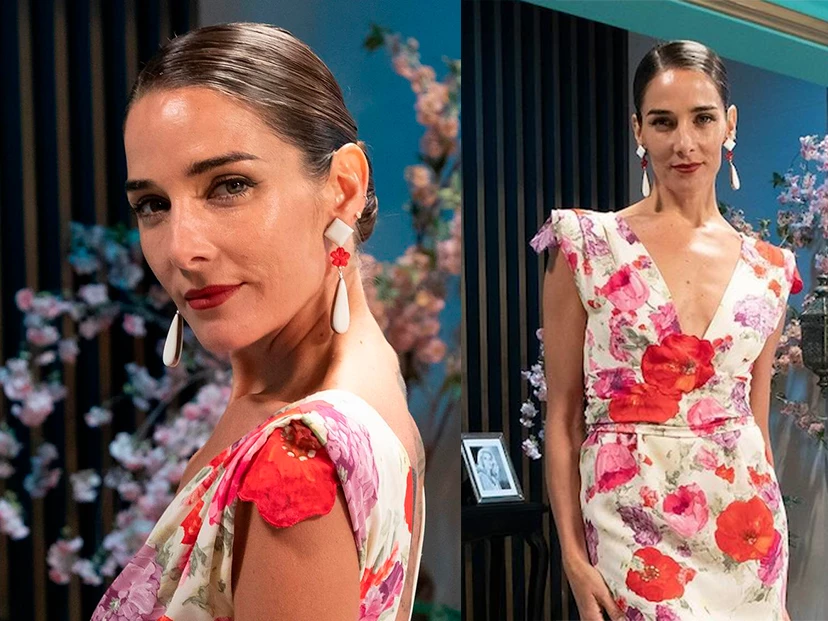 La nieta de Mirtha Legrand llevó un vestido corto de Gino Bogani, su diseñador de cebecera, confeccionado en crepe georgette de seda natural, con estampa floral, muy de tendencia en esta temporada.