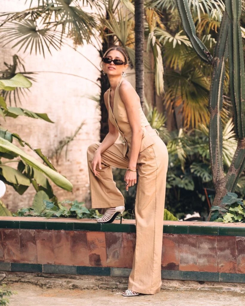 A través de sus redes sociales, Carla compartió su vestuario, firmado por The IQ Collection de España. La modelo lució un chaleco sastre en tono beige, con botones y bolsillos con solapas, y el detalle de espalda al aire, dándole el toque perfecto de sensualidad.