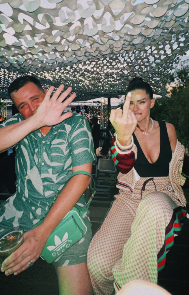 A través de una imagen compartida en Instagram por su amigo y fotógrafo Tomi Raimon, se puede ver que la China lució un conjunto de campera y jogging de la marca Gucci y lo combinó con unas cancheras zapatillas blancas.