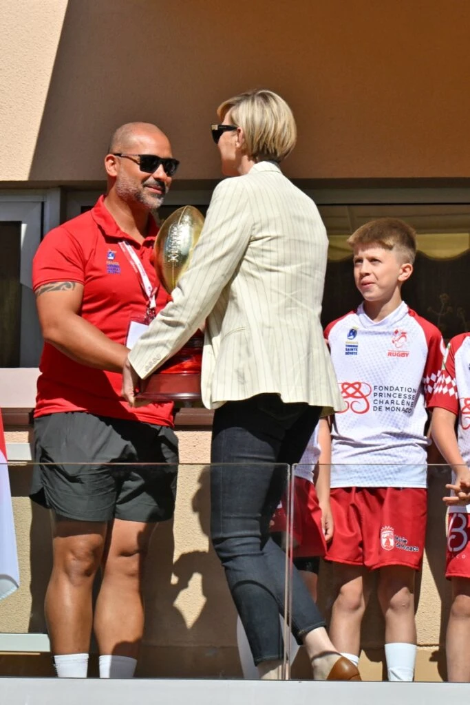 La pareja real de Mónaco disfrutaron de la final del torneo Santa Devota rugby, un deporte que se practica mucho en el principado y que es uno de los más amados por la princesa, que era nadadora olímpica antes de casarse.