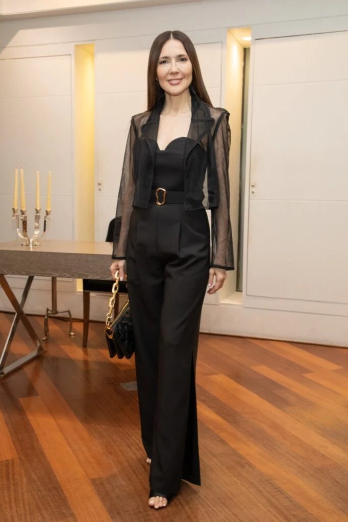 Para este día tan importante, la periodista adoptó un look total black súper elegante, sobrio y muy sentador.