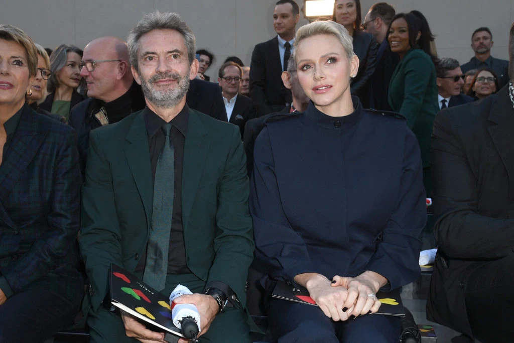 Charlene llevó el equipo con stilettos negros clásicos, logrando un look muy trendy y sentador, que entalla la figura y destaca la cintura. En pasarela, cuando Akris presentó la colección, el traje fue presentado en color arena. Pero la princesa de Mónaco prefirió un tono oscuro que contrasta a la perfección con su corte pixie platinado y su color de piel.