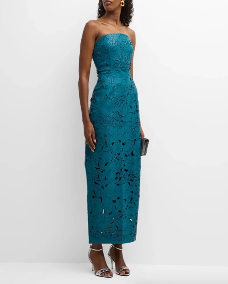 Markle lució un vestido Cult Gaia Raylene, con bordado floral, sin tirantes y con detalles de recortes. Lo combinó con unos zapatos en tono crema de la firma Aquazzura y como accesorios principales, eligió un brazalete dorado "Love" de Cartier y unos pendientes con diez diamantes de la joyería Kimai.