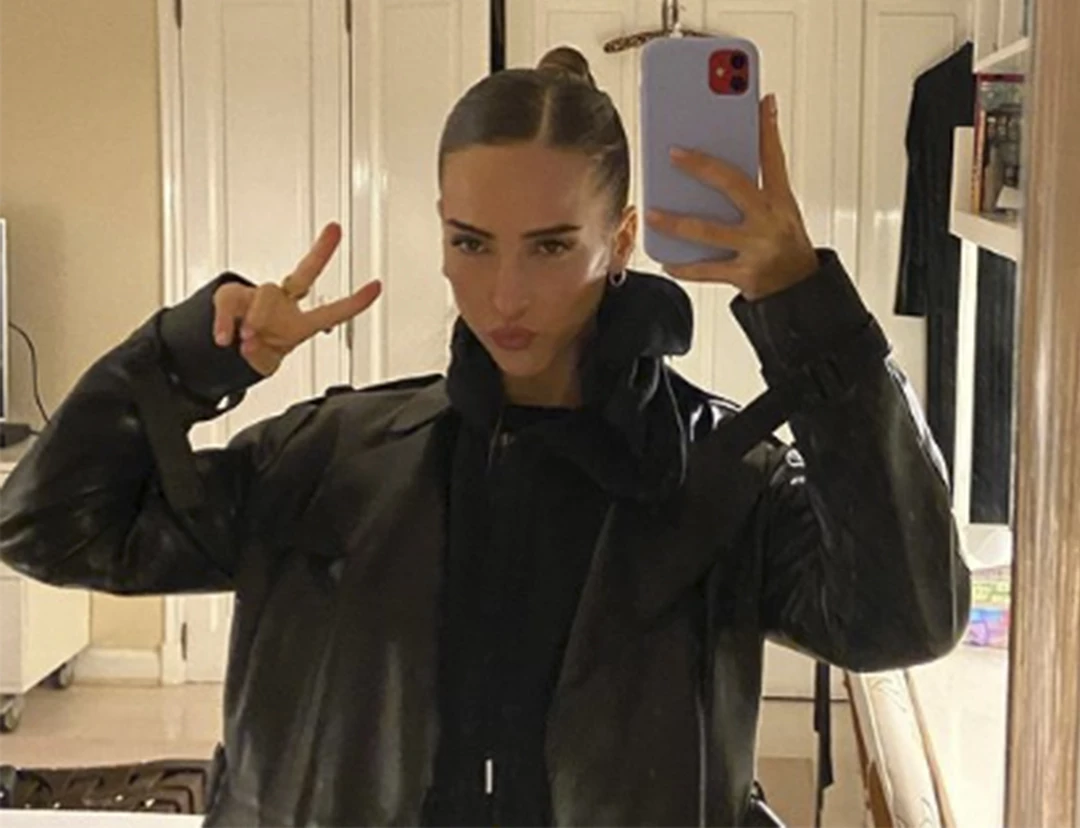 La joven de 19 años compartió en Instagram las fotos de su imagen reflejada en el espejo, donde se la puede ver luciendo un pantalón negro y una camisa celeste, ambas prendas oversize, que combinó con una campera de cuero de corte clásico. La hija de Juana Viale completó su look urbano con borcegos negros y el pelo recogido.