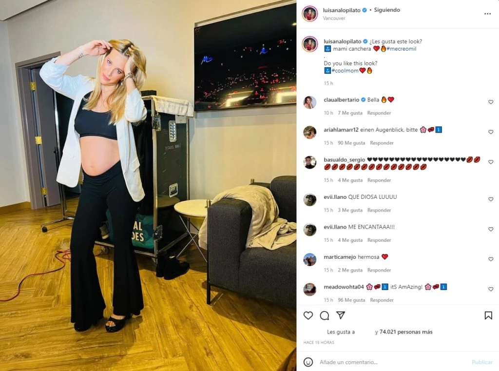 En esta ocasión, Luisana decidió mostrar el outfit súper cómodo que armó con prendas básicas y que le permitió lucir su pancita de embarazada. "¿Les gusta este look?", preguntó la ex "Rebelde Way" junto a la foto donde se la ve con un blazer blanco, un top negro, un pantalón oxford y unos zapatos altos en el mismo tono.