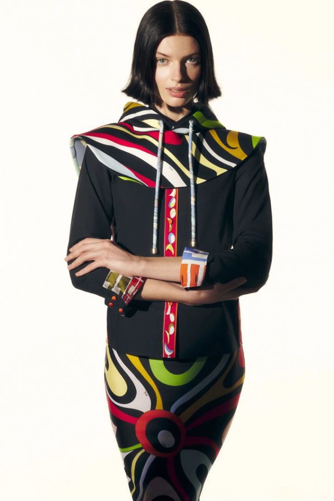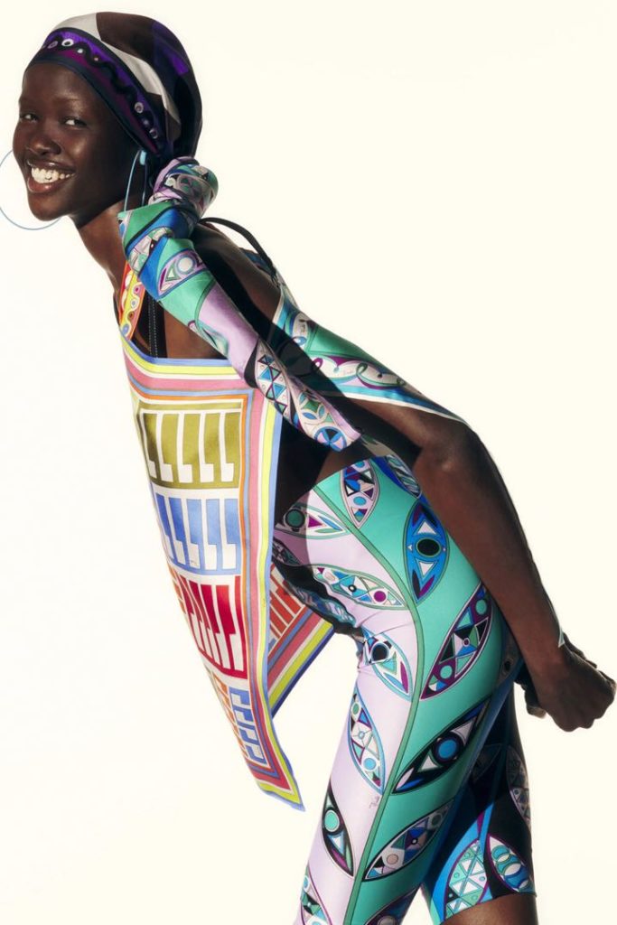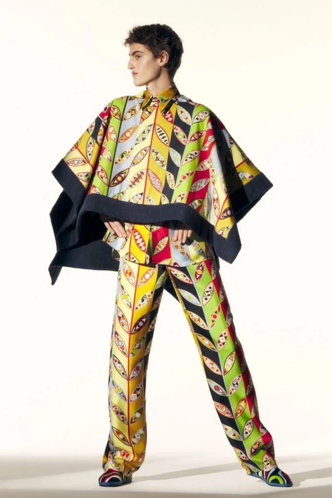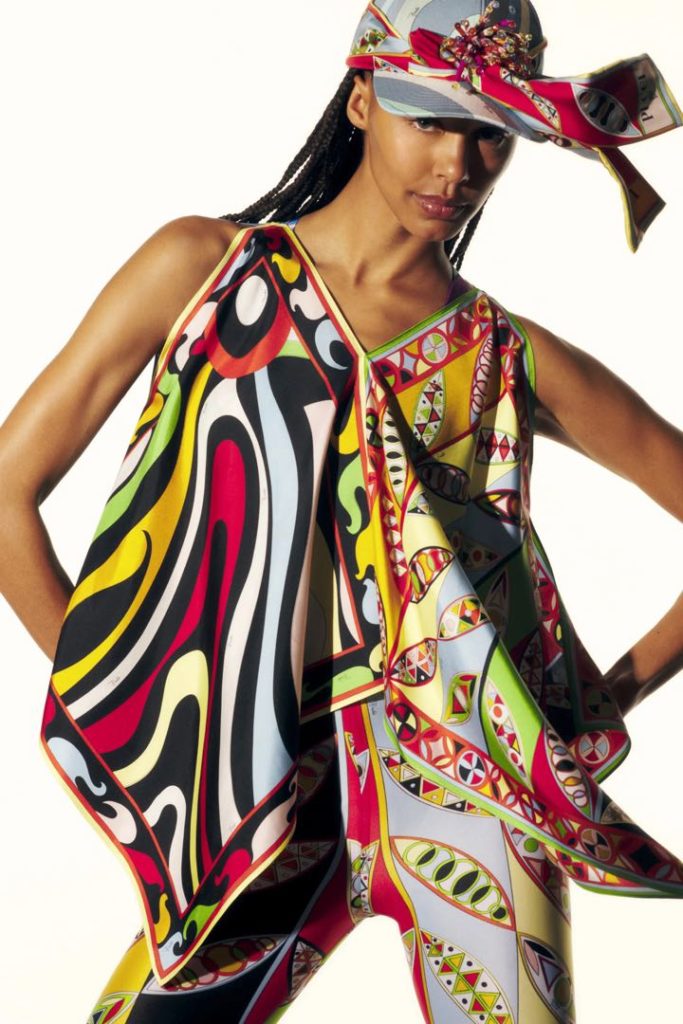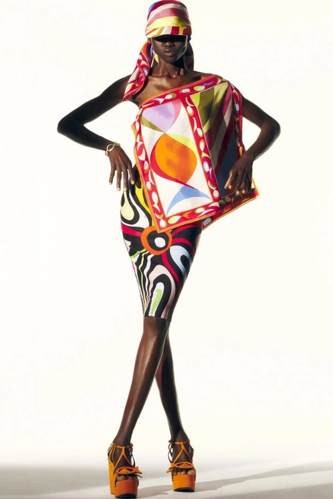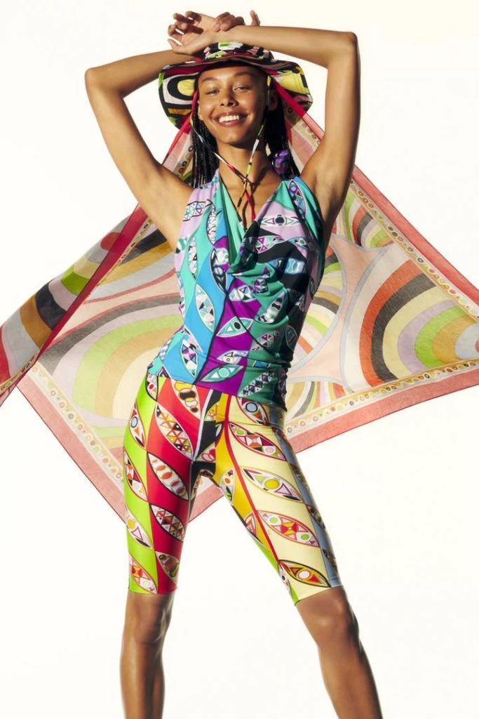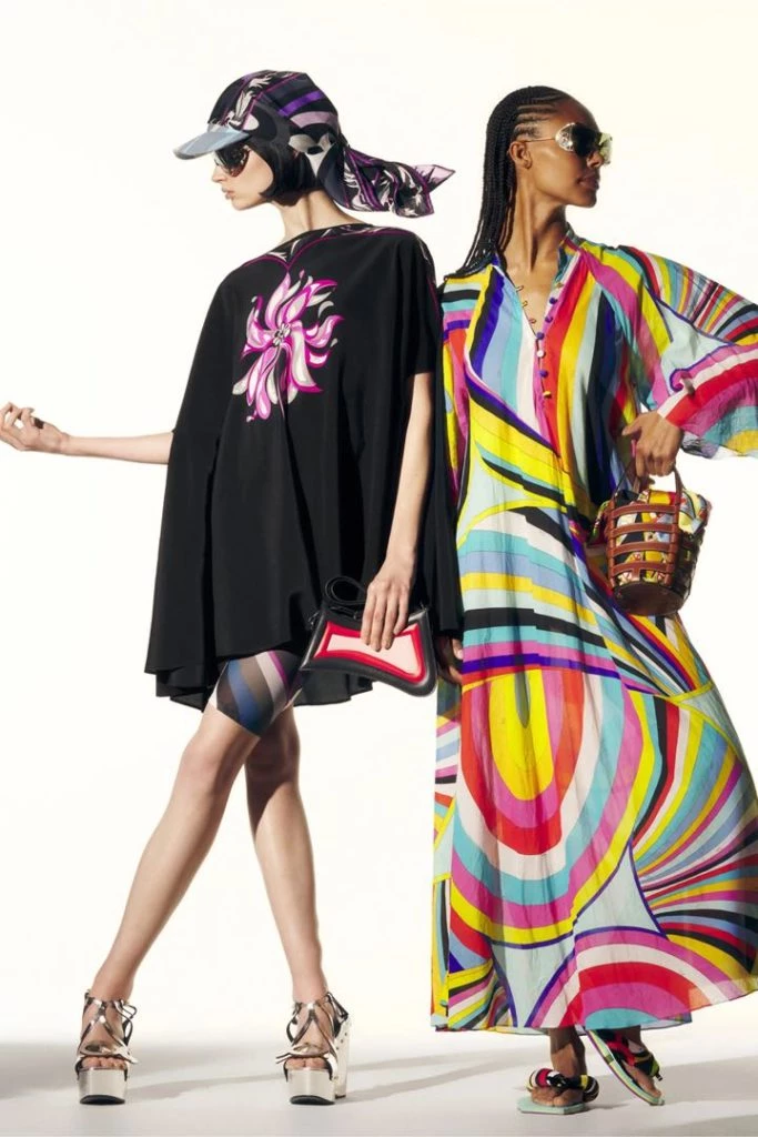 La colección 2022 de Emilio Pucci no solo forma parte de la historia de la casa. También se apoya en ideas contemporáneas, reciclando bufandas como blusas y túnicas con estampados mixtos y creando diseños que son neutrales en cuanto al género.