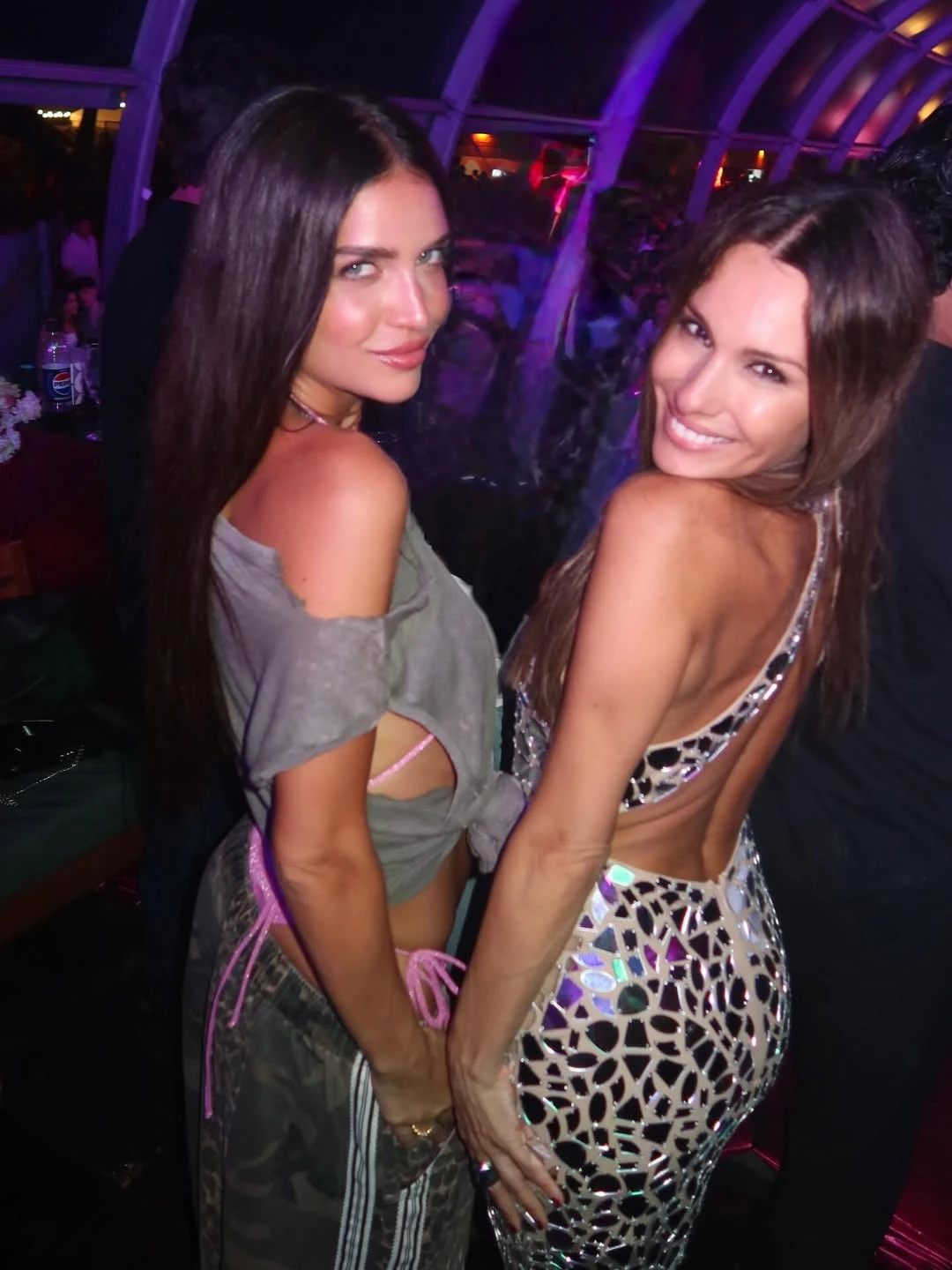 Durante esta salida previa a su cumpleaños, la modelo lució un vestido de espejos que combinó sensualidad y una estética bolichera. Pampita llevó un vestido corto, ultra ajustado y completamente recubierto de piezas espejadas, un diseño que reflejaba las luces del lugar y potenciaba cada movimiento.