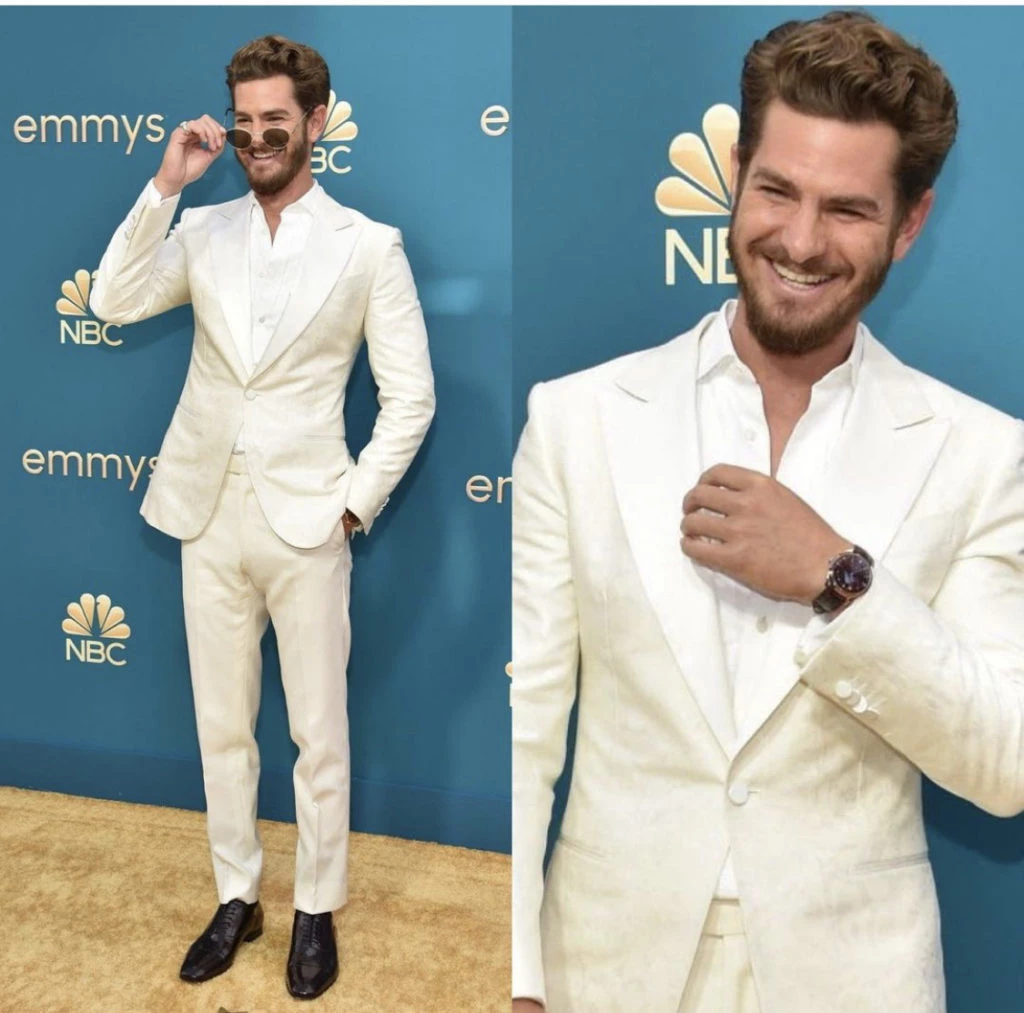 Con un traje blanco total, Andre Garfield sorprendió. Un look que estuvo a cargo de Warren Alfie Baker.