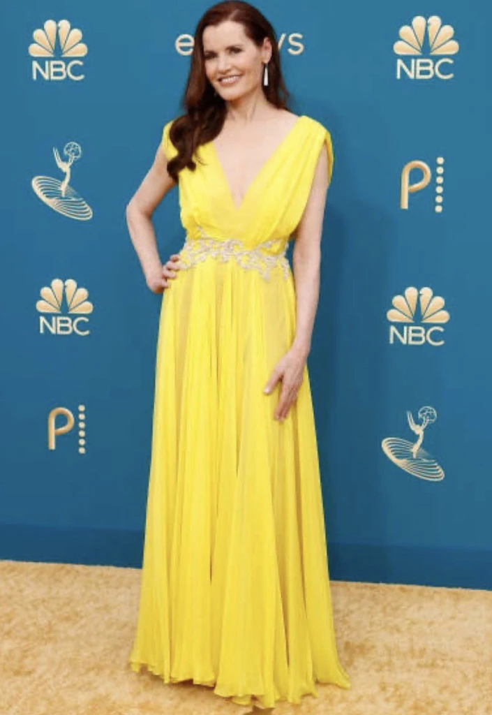 La mítica actriz de Thelma y Louis brilló con un vestido amarillo de la línea couture de Rani Zakhem.