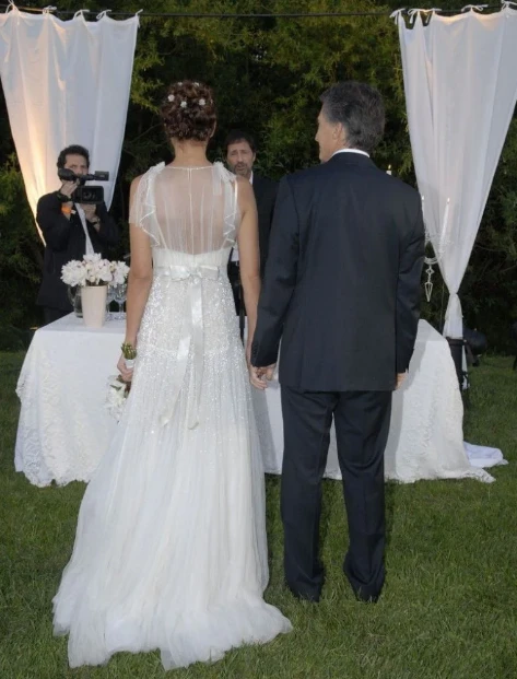La fiesta se realizó 4 días después en la estancia La Carlota, un campo de tres mil hectáreas del tío de Mauricio Macri, Jorge Blanco Villegas. Para ese evento, Juliana llevó un diseño más romántico de la diseñadora británica Jenny Packham que compró en un viaje al exterior.