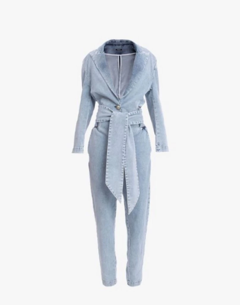 Este diseño que elegió Wanda Nara es de la firma Balmian. Es un diseño de jean azul con cuello sastre, mangas largas, botones dorados grabados y un cinturón ancho y largo para realizar un lazo. Su valor es de $ 193.000.