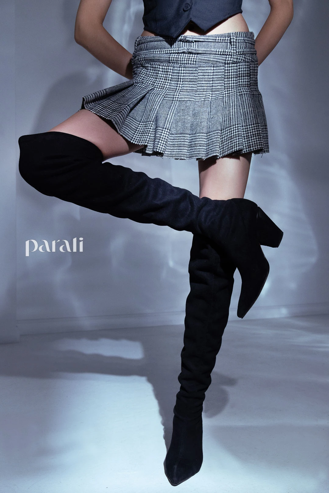Chaleco sin espalda y mini tableada escocesa @mija_ba. Bucaneras gamuzadas @lajollashoes