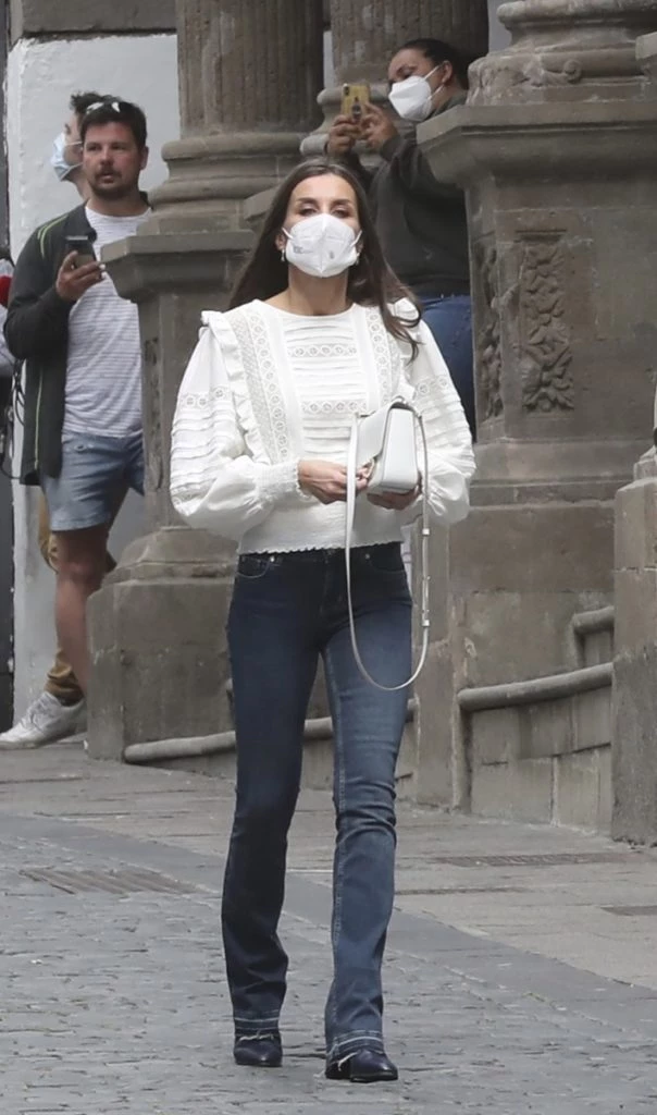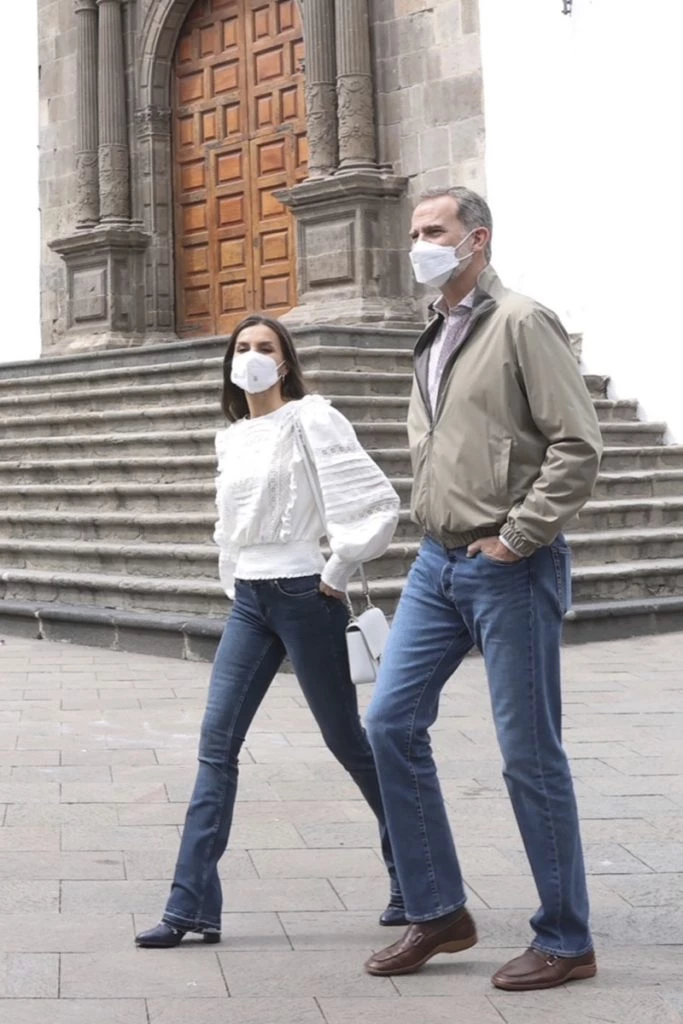 Jeans y blusa romantica: el look elegido por Letizia para caminar por La Palma