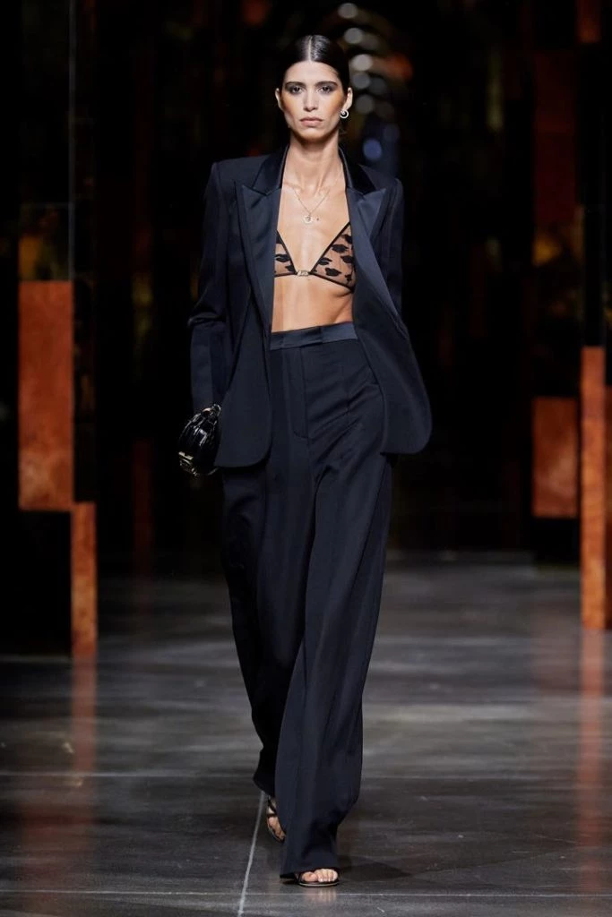 Vestidos de encaje, diseños de noche y trajes con blazers y pantalones palazzo con marcado acento en los aires de finales de los años 70, invadieron la pasarela. También se destacaron impresionantes total looks blancos.