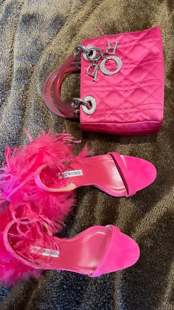 La empresaria apostó a un total look fucsia por ello eligió accesorios en el mismo color. Coronó su outfit con una mini cartera matelaseada de Dior y unas sandalias adornadas con plumas en el talón.