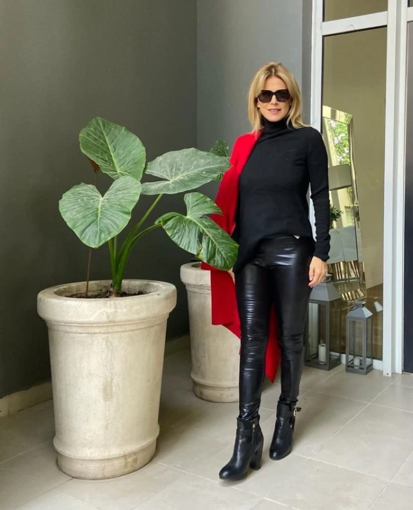La ex participante de Masterchef Celebrity 2 siempre marca tendencia y, claro, esta vez no fue la excepción: eligió un total black y lo levantó con un lindísimo saco de paño rojo.
