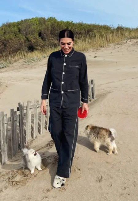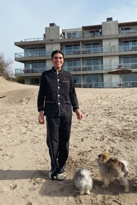 La conductora compartió en su Instagram varias fotos, tomadas en la arena frente al mar y en compañía de su perro, que no tardó en generar reacciones en redes: muchos destacaron la originalidad del look y, sobre todo, la ternura del momento.