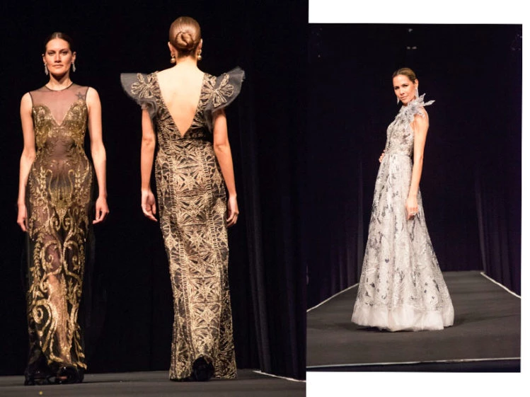 Las piezas protagonizaron siluetas mágicas con brocatos, sedas, guipiurados y transparencias. Se presentaron también vestidos con estampas florales, abstractas y étnicas, aggiornados con insinuantes escotes, organzas, plumas, apliques de flores en 3 D y sensuales espaldas.